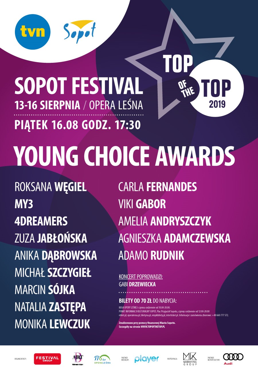 Producentem wydarzenia jest firma festival group, współorganizatorami: Koncertem forever young we wtorek rozpocznie się top of the top sopot festival. 20 sierpnia w operze leśnej w sopocie odbędzie się wyjątkowa impreza. Drugi dzień będzie podsumowaniem historii festiwali, które od 60 lat rozgrzewają publiczność w sopocie. Sopot festival — le sopot festival (ou « międzynarodowy festiwal piosenki polskiej ») est un festival annuel de musique contemporaine polonaise.